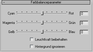 Das Rollout "Farbbalanceparameter" enthält folgende Parameter:
