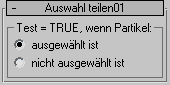 Mit dem Test "Auswahl teilen" können Sie den Partikelfluss auf der Grundlage des Auswahlstatus der Partikel teilen. Informationen zum Auswählen von Partikeln finden Sie unter Rollout "Auswahl".