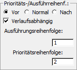 Unteroperatoren vom Typ "Ausgabe", einschließlich "Betragsänderung", verfügen über Optionen, mit denen sie die Prioritäts- und Ausführungsreihenfolge definieren können. Beim Erstellen komplexer Einrichtungen ist es wichtig, diese Optionen zu beachten.
