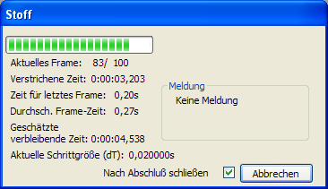 Im Dialogfeld "Stoffsimulation" werden Informationen zur Simulation während des Ausführens der Simulation angezeigt.