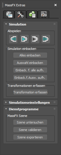 im MassFX-Werkzeugkasten (im Flyout Simulation starten) zur Verfügung.