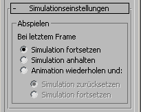 - Wählen Sie, ob und wie die Simulation bei Erreichen des letzten Frames der Animation fortgeführt werden soll:
