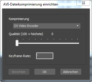 3ds Max öffnet ein Dialogfeld "AVI-Dateikomprimierung einrichten".