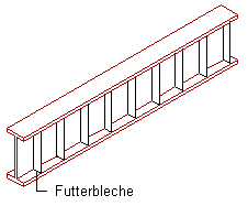 Sie können der Darstellung von Tragwerken Blöcke als Komponenten in Darstellungen hinzufügen. Beispielsweise können Sie Blöcke erstellen, die Futterbleche darstellen, und diese anschließend Unterzügen hinzufügen oder Befestigungswinkelblöcke erstellen und diese Tragwerken hinzufügen.