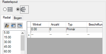 Klicken Sie im Dialogfeld Stützenraster auf das Optionsfeld Radial.