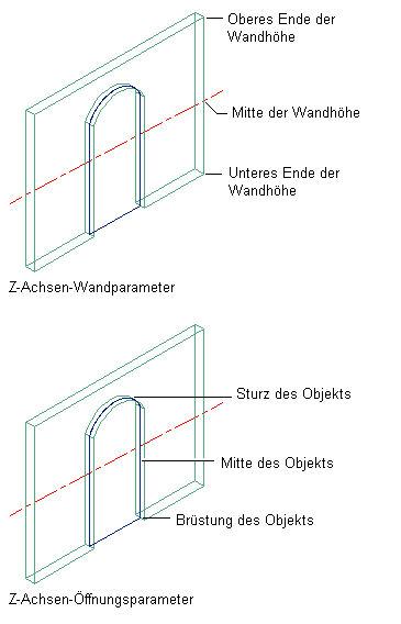 | Zur Unterkante der Öffnungen in der Wand messen | Wählen Sie für die Einstellung Zu die Option Brüstung des Objekts. |