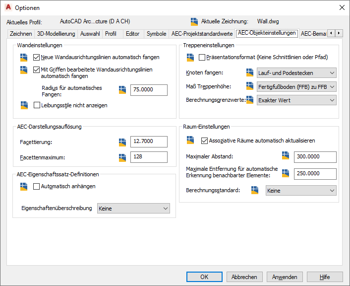- Wählen Sie die Registerkarte AEC-Objekteinstellungen aus.