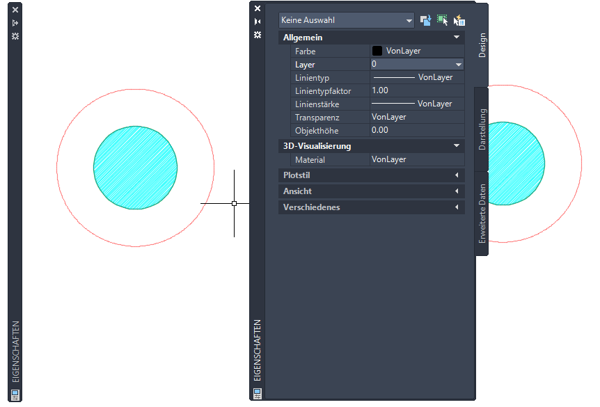 Gehen Sie wie folgt vor, um die Eigenschaftenpalette auszublenden, wenn sie nicht verwendet wird. Die Eigenschaftenpalette kann so konfiguriert werden, dass sie ausgeblendet wird, wenn Sie den Cursor fort bewegen, sodass nur die Titelleiste sichtbar ist. Wenn Sie den Cursor wieder über der Titelleiste positionieren, wird die Eigenschaftenpalette erneut eingeblendet.