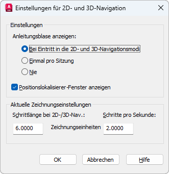 Legt die Einstellungen für die 2D- und 3D-Navigationsmodi für die aktuelle Zeichnung fest.