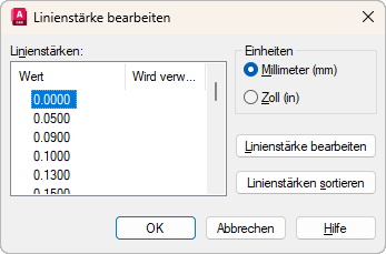 Legt die Einheit fest, in der die Linienstärken in der Liste angezeigt werden sollen.