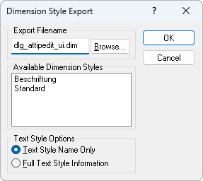 | Text Style Options | Speichert entweder die vollständigen Textstilinformationen oder nur den Textstilnamen der Bemaßung in der ASCII-Datei. |