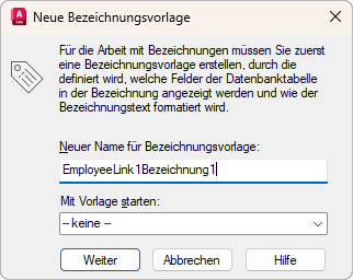 In bestimmten Fällen müssen Bezeichnungsvorlagen bearbeitet werden. Beispiel: Sie möchten zusätzliche Felder aus der Datenbanktabelle in der Zeichnung anzeigen oder die Schrift oder die Größe des Bezeichnungsobjekts ändern. Darüber hinaus können Sie mehrere Einstellungen für den Abstand festlegen, die sich auf den Einfügepunkt der Bezeichnungen und - bei zugeordneten Bezeichnungen - auf die zugehörigen Führungsobjekte auswirken.