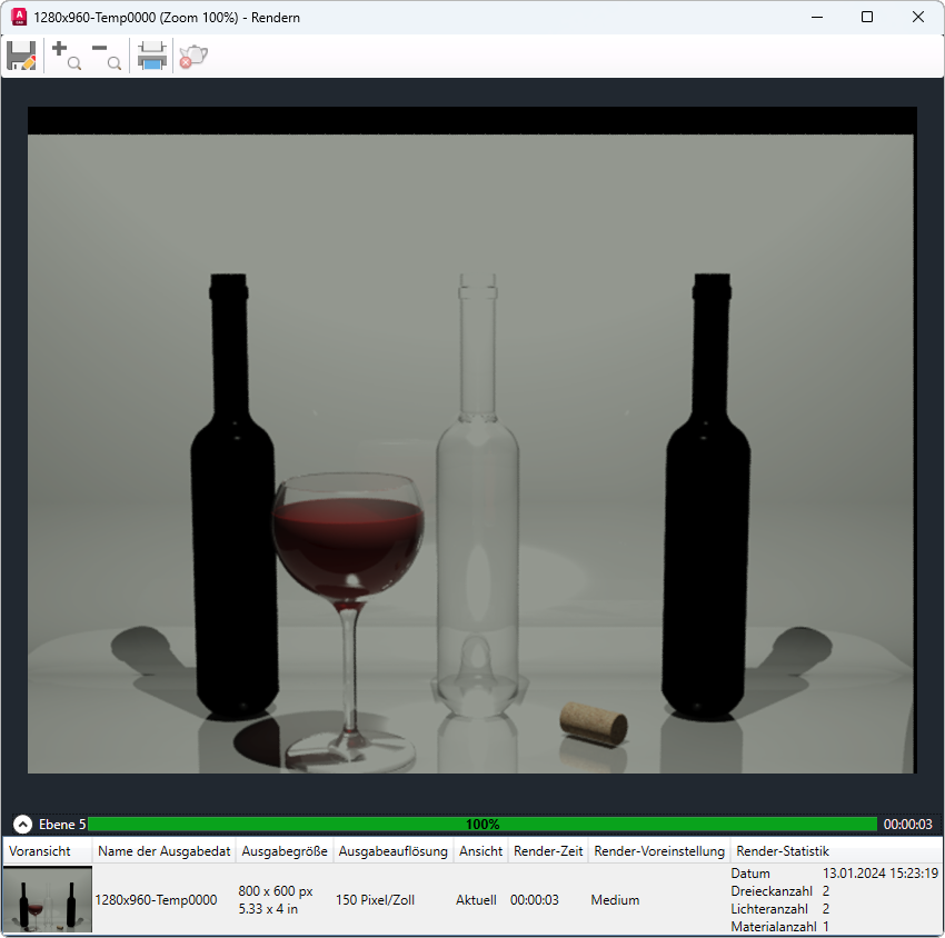 Die Renderausgabe aus einer Zeichnung wird immer im entsprechenden Renderfenster angezeigt.