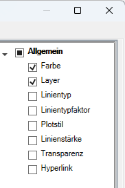 Wenn ein Objekttyp ausgewählt ist, werden die Eigenschaften für diesen Objekttyp in der Schnelleigenschaftenpalette angezeigt, wenn ein Objekt des entsprechenden Objekttyps ausgewählt, QPMODE auf 2 festgelegt und PICKFIRST aktiviert ist. Heben Sie die Auswahl eines Objekttyps auf, wenn dieser Objekttyp aus Schnelleigenschaftenpalette entfernt werden soll.