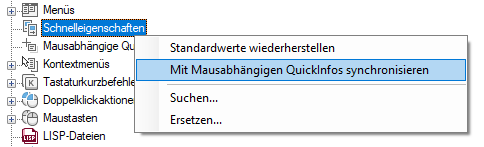 Synchronisieren der Schnelleigenschaften mit mausabhängigen QuickInfos