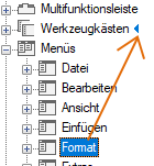 2. Klicken Sie auf das Pluszeichen (+) neben dem Werkzeugkasten, der den Befehl oder das Steuerelement enthält, den bzw. das Sie neu positionieren möchten, um ihn zu erweitern.