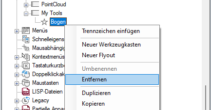 3. Klicken Sie mit der rechten Maustaste auf den Befehl oder das Steuerelement, den bzw. das Sie entfernen möchten. Klicken Sie auf Entfernen.