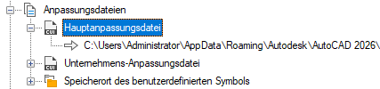 - Navigieren Sie im Explorer zu <Laufwerk>:\Benutzer\<Benutzerprofilname>\AppData\Roaming\Autodesk\<Produktname>\<Versionsnummer>\<Sprache>\support\<Anpassungsdateiname>.cuix.