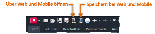 Speichern Sie eine Datei in AutoCAD Web & Mobile, indem Sie auf In Web und Mobile speichern klicken (Befehl SPEICHINWEBMOBIL)