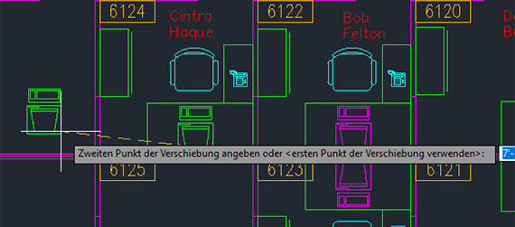 Wir sperren vorübergehend den Layer für die Arbeitsbereiche und frieren den Layer für die Möbel, sodass wir die gewünschten Objekte löschen können. Dann machen wir die Layeraktionen rückgängig.