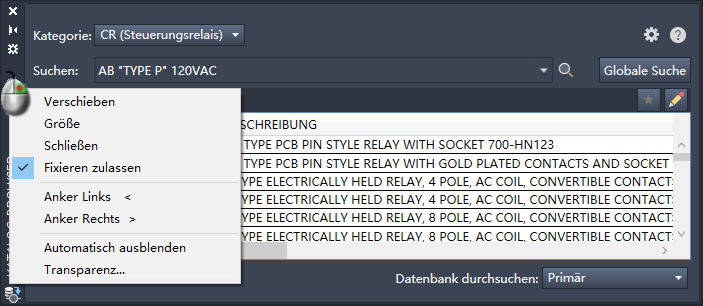 AutoCAD Electrical-Toolset verwendet für die Verwaltung von Projekten und für die Arbeit mit der Katalogdatenbank Paletten. Eine Palette kann auf dem Bildschirm verbleiben, während andere Befehle verwendet werden. Sie steht Ihnen also bei Bedarf jederzeit zur Verfügung.