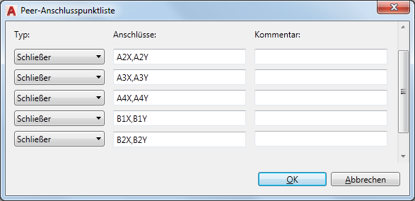 Klicken Sie zum Öffnen des Dialogfelds Anschlusspunktliste, in dem Sie die Anschlüsse für die Hilfssymbole festlegen können.