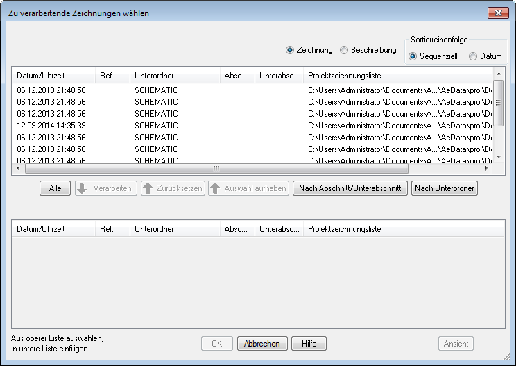 Nachdem Sie Projekt plotten ausgewählt haben, können Sie festlegen, welche Zeichnungen des Projekts Sie plotten möchten.