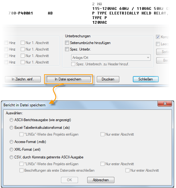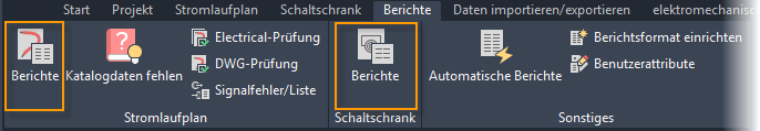 Berichte können problemlos erstellt werden. Wählen Sie aus, ob Sie einen Stromlaufplanbericht oder einen Schaltschrankbericht erstellen möchten,