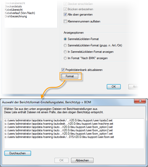 Mithilfe von Formatdateien können Sie Voreinstellungen für Berichte festlegen. Sie können eine beliebige Anzahl von Formatdateien für einen Bericht verwenden. Auf diese Weise können Sie beliebig viele benutzerdefinierte Berichte erstellen und sie jederzeit problemlos ausführen. Zum Erstellen von Formatdateien verwenden Sie den Befehl Berichtsformat einrichten. Finden