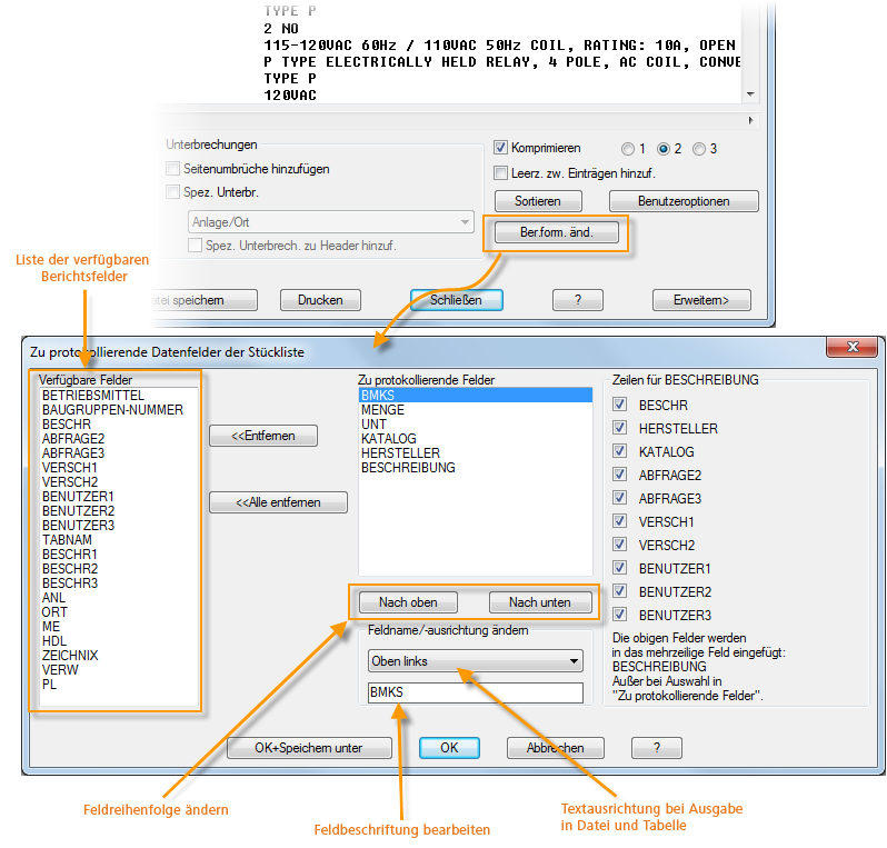 Beim Ausführen des Berichts können Sie Felder einschließen und ausschließen, die Feldreihenfolge ändern und die Feldbeschriftung ändern.