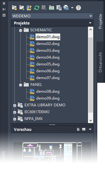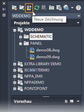Zum Erstellen und Hinzufügen von Zeichnungen zu einem Projekt verwenden Sie den Projekt-Manager. Finden