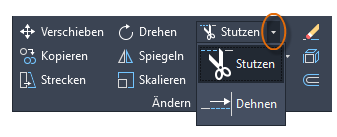 Eine gängige Methode ist die Verwendung des Befehls VERSETZ zusammen mit den Befehlen STUTZEN und DEHNEN. Dehnen und Stutzen sind zwei der am häufigsten verwendeten Funktionen. Klicken Sie auf das Werkzeug STUTZEN oder DEHNEN, oder geben Sie TR für STUTZEN oder EX für DEHNEN in der Befehlszeile ein.