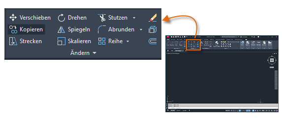 Klicken Sie auf das Werkzeug KOPIEREN, oder geben Sie KO in die Befehlszeile ein, um den Befehl zu starten. Hier können Sie zwischen zwei Methoden wählen, je nachdem, welche für Sie einfacher ist. Diese beiden Methoden werden Sie häufig verwenden.