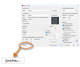 Das sich öffnende Fenster Voransicht enthält einen Werkzeugkasten mit mehreren Steuerelementen, z. B. Plotten und Voransichtsfenster schließen.