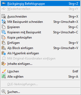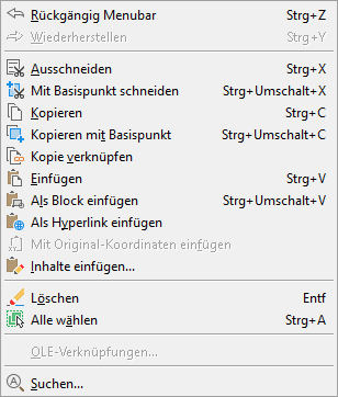 Das folgende Beispiel zeigt das Menüelement OLE-Verknüpfungen im Menü Bearbeiten, das durch ein Häkchen markiert ist, sowie das Bild des Menüelements Kopie verknüpfen, das durch einen Rand hervorgehoben ist.