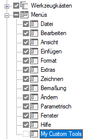 4. Klicken Sie im Bereich Anpassungen in <Dateiname> auf das Pluszeichen (+) neben dem Knoten Menüs, um ihn zu erweitern.
