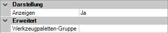 7. Klicken Sie in Bereich Eigenschaften unter Erweitert im Feld Werkzeugpalettengruppe auf die Dropdown-Liste, und wählen Sie die Werkzeugpalettengruppe, die Sie der Multifunktionsleisten-Registerkarte zuweisen möchten.