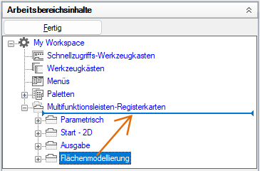 4. Wählen Sie den Arbeitsbereich mit der Multifunktionsleisten-Registerkarte, der Sie eine Werkzeugpalettengruppe zuweisen möchten.