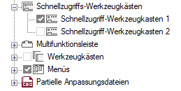 4. Klicken Sie im Bereich Anpassungen in <Dateiname> auf das Pluszeichen (+) neben dem Knoten Schnellzugriffs-Werkzeugkästen, um ihn zu erweitern.