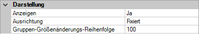 • Geben Sie im Feld Gruppen-Größenänderungs-Reihenfolge einen Wert ein, um die Größenänderungs-Reihenfolge für die Multifunktionsleisten-Gruppe unter den Objekten auf gleicher Ebene zu bestimmen, wenn die Größe der Multifunktionsleiste geändert wird.