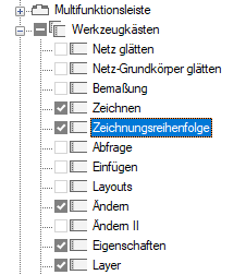 4. Klicken Sie im Bereich Anpassungen in <Dateiname> auf das Pluszeichen (+) neben dem Knoten Werkzeugkästen, um ihn zu erweitern.