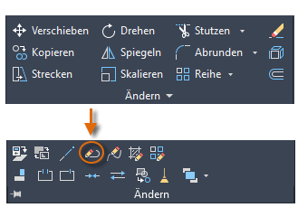 Eine gängige Methode ist die Verwendung des Befehls VERSETZ zusammen mit den Befehlen STUTZEN und DEHNEN. Dehnen und Stutzen sind zwei der am häufigsten verwendeten Funktionen. Klicken Sie auf das Werkzeug STUTZEN oder DEHNEN, oder geben Sie TR für STUTZEN oder EX für DEHNEN in der Befehlszeile ein.