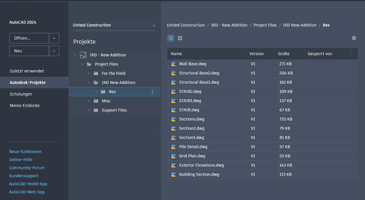 Aktualisierungen für Autodesk Projects