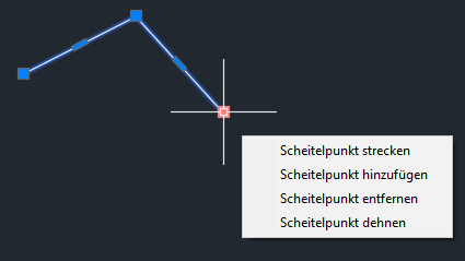 Mit der neuen Griffoption Scheitelpunkt dehnen wird der Scheitelpunkt immer vom ausgewählten Endgriff aus gedehnt, unabhängig davon, in welche Richtung die Polylinie gezeichnet wurde.