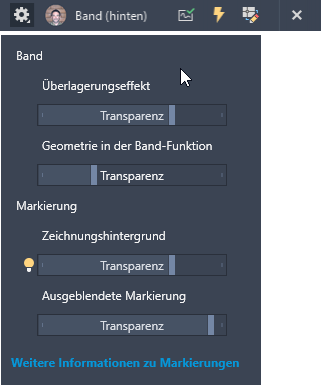 Es sind neue Einstellungen im Dropdown-Menü Einstellungen des Werkzeugkastens Band verfügbar.