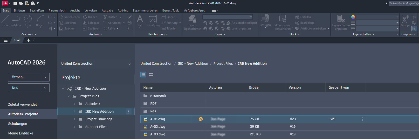 - Navigieren Sie zu einer Zeichnung im Projekt, und öffnen Sie sie.
