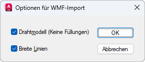 Importiert Objekte als Drahtmodelle. Wenn Sie die Option deaktivieren, werden Objekte als gefüllte Objekte eingelesen.