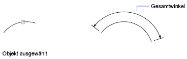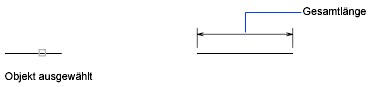 Legt die Länge eines ausgewählten Objekts fest, indem die gesamte absolute Länge vom festen Endpunkt aus angegeben wird. Die Option Gesamt bestimmt den eingeschlossenen Winkel eines ausgewählten Bogens durch Festlegen eines bestimmten Gesamtwinkels.