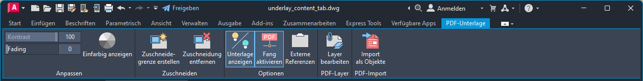 PDF-Unterlage (Kontextabhängige Registerkarte in der Multifunktionsleiste)