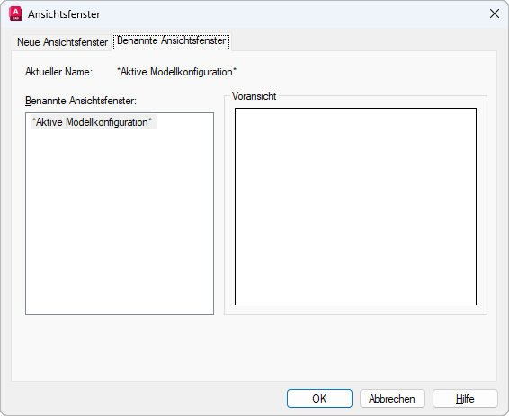 Zeigt den Namen der aktuellen Ansichtsfensterkonfiguration an.